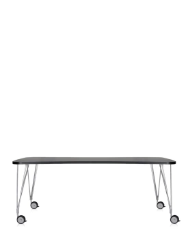 Max 190x90 cm Table on Wheels White Black