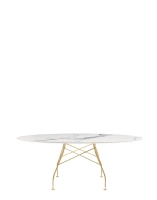 Glossy Marble Oval 192x118 cm Table Gilded White