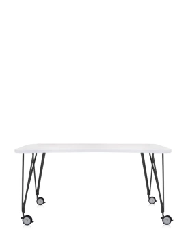 Max 190x90 cm Table on Wheels White Black
