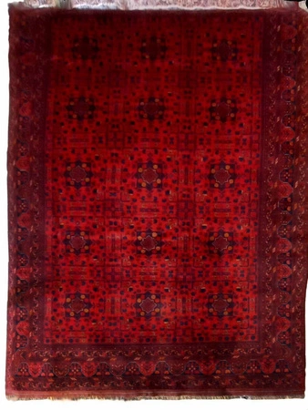 A unique carpet from Afghanistan. The raw material is top quality natural sheep's wool, sourced from local farms. The richness of the colors is due to natural dyes, and the one-of-a-kind design was created by distinguished artisans. Thanks to the method of weaving used, the carpet is unique - no two carpets in the world are alike. The low pile makes it easy to maintain, while the wool makes it non-absorbent of dirt.
