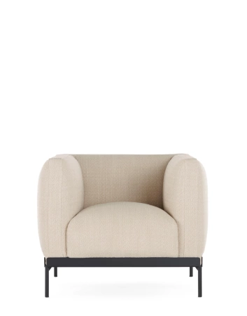 The design is distinguished by harmonious contrast between soft, comfortable cushions a precisely shaped metal frame, resembling a subtle tray. This lightweight, geometric base gives the sofas a unique character, making them fit perfectly into modern interiors, both private and commercial.