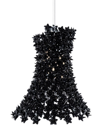 Bloom is a unique lamp that combines state-of-the-art manufacturing technology with a sophisticated, decorative design. Its design is based on a cylindrical polycarbonate frame, which is completely covered with intricately arranged double transparent flowers of the same material.
