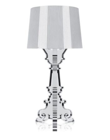 The Bourgie table lamp from Kartell combines classic baroque style with modern technology. Its ornate base consists of three elements that combine to form a rich and elegant form, while the large shade with a pleated texture diffuses light, creating striking reflections. Thanks to a special shade mounting system, the lamp can be set at three different heights: 68, 73 or 78 cm, allowing you to customize its appearance and function according to your own preferences and interior needs.