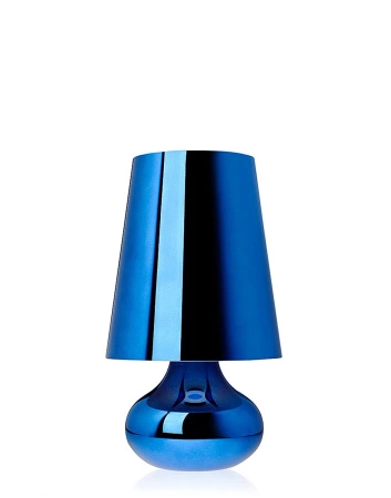 The Cindy table lamp, designed by Ferruccio Laviani for Kartell, is a contemporary interpretation of classic 1970s lighting. It features a conical lampshade and a rounded, teardrop-shaped base. Made of metallic ABS, it is available in a wide range of matte metallic shades such as platinum, gold, pink, blue or purple. Its shiny chrome finish gives it a modern feel, emitting rich, iridescent reflections that add a luxurious touch to the interior. The lamp is 42 cm high and 23.6 cm in diameter, and uses an E27 bulb with a maximum output of 15W LED as its light source. With its unique design and distinctive colors, Cindy is a striking decorative element in any room.