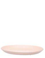 Hand-woven rug in pastel shades of brown and soft purple made of wool and viscose. The abstract pattern resembles sawn concrete.