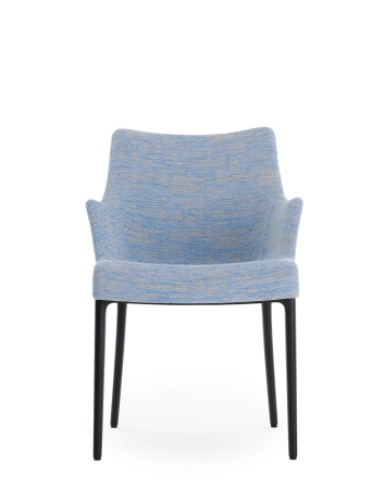 Both versions are characterized by ergonomic, slim lines, which have been subtly wrapped in fabric - your choice of melange upholstery or eco leather, emphasizing the exclusive character of the furniture. By using soft, fluid shapes, the chair is not only comfortable, but also extremely lightweight visually, making it fits perfectly in any space - From luxurious home interiors to elegant restaurants or hotels.
