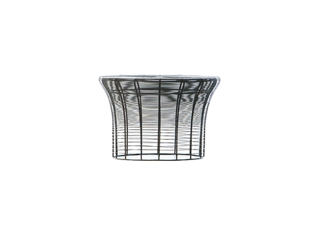Tables and stools from the Aram collection is a unique furniture designed by Japanese studio Nendo for the brand GAN Rugs, combining traditional craftsmanship with modern design. Handcrafted from thin, thermo-laminated stainless steel wires formed into circles of varying density, they create a light and spacious structure.