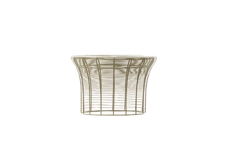 Tables and stools from the Aram collection is a unique furniture designed by Japanese studio Nendo for the brand GAN Rugs, combining traditional craftsmanship with modern design. Handcrafted from thin, thermo-laminated stainless steel wires formed into circles of varying density, they create a light and spacious structure.