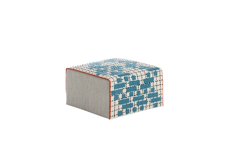 Puff Bandas Small brands GAN Rugs, designed by Patricia Urquiola, is a unique piece of furniture that combines modern design with traditional craftsmanship. It is part of the modular Bandas collection, which allows you to create flexible and personalized arrangements in living spaces. Each piece is made by hand on a loom and finished with embroidery and crochet by artisans in India, highlighting its unique character.