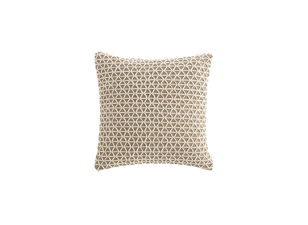 The pillow is available in two sizes: 50 × 50 cm and 70 × 40 cm. Made of natural jute, it provides the perfect backdrop for geometric embroideries in thick wool, creating triangle patterns in muted shades such as white, blue and pink. Fill with 100% polyester provides comfort and durability.