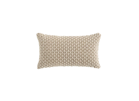 The pillow is available in two sizes: 50 × 50 cm and 70 × 40 cm. Made of natural jute, it provides the perfect backdrop for geometric embroideries in thick wool, creating triangle patterns in muted shades such as white, blue and pink. Fill with 100% polyester provides comfort and durability.