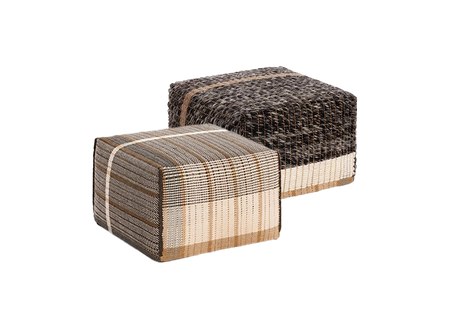 Reversible pouffe brands GAN Rugs, designed by Charlotte Lancelot, is a unique piece of furniture that combines functionality with innovative design. Thanks to an innovative hand-weaving technique, the pouf has two distinct sides: one is made of 100% virgin wool, offering warmth and softness ideal for colder days, while the other is made of a blend of linen and cotton, providing lightness and breathability for the warmer months.