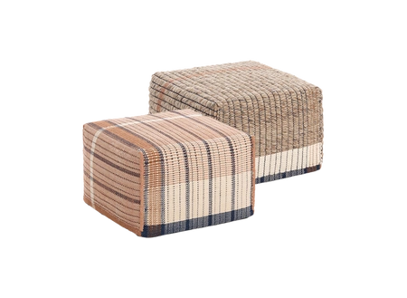 Reversible pouffe brands GAN Rugs, designed by Charlotte Lancelot, is a unique piece of furniture that combines functionality with innovative design. Thanks to an innovative hand-weaving technique, the pouf has two distinct sides: one is made of 100% virgin wool, offering warmth and softness ideal for colder days, while the other is made of a blend of linen and cotton, providing lightness and breathability for the warmer months.