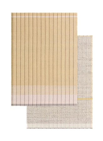 Gan Reversible Yellow Double-sided carpet is a unique product that will bring a new dimension of elegance and functionality to your interior. Made with the utmost care by the renowned Gan brand, this rug offers two different sides to choose from to suit your needs. On the one hand, it presents a soft and pleasant to the touch wool material, adding warmth and coziness to the room. On the other hand, it presents a refined and natural look due to the use of linen, perfectly matching the minimalist decor.