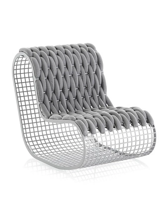 BUIT starts with aluminum - GANDIABLASCO's favorite material. After analyzing durability and ergonomics, the pieces were given volume, creating a modular collection consisting of a designer club chair and pouffe. Both items are handmade from powder-coated aluminum mesh, woven with fabric 100% Trevira CS, developed by Kvadrat-Febrik specifically for outdoor use.