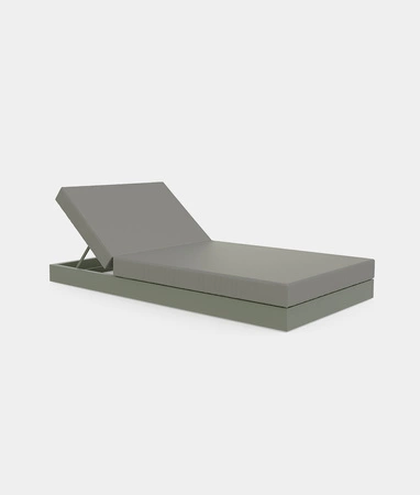 CHILL bed with backrest 100 captures the essence of outdoor relaxation in an elegant and simple form. Made of anodized or thermally lacquered aluminum, available in a variety of finishes - beige red, brown, gray-brown, cement gray, sand, black, anthracite and more - it brings the comfort of an indoor bed to the outdoors.