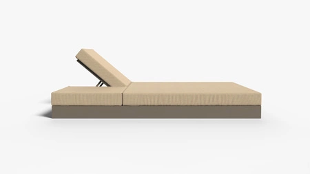 CHILL bed with backrest 140 from GANDIABLASCO is a designer garden bed with adjustable backrest, measuring 140x200x24h cm, so you can create a space for rest and relaxation outside. It is an outdoor recliner made of an anodized or powder-coated aluminum frame, on which rests a mattress upholstered with Sunbrella outdoor fabric, Kvadrat or another of the available options.