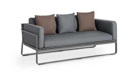 FLAT 2 seat sofa is one of the items in this collection. It is a designer sofa made of welded, powder-coated aluminum profiles and 100% recyclable polyethylene. It is available in such colors as white, agate gray, sand, blue-gray, cement gray, anthracite, and brown.