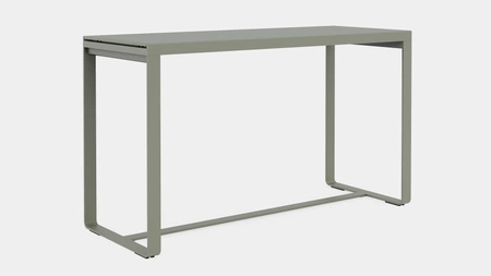 FLAT bar table 180 is one of the closing elements of the collection. It is a designer bar table with a solid structure, made of solid plates and solid and hollow aluminum profiles, hand-welded and then powder-coated in one of seven colors from the GANDIABLASCO palette: brown, anthracite, cement gray, agate gray, white, bluish gray, and sandy.