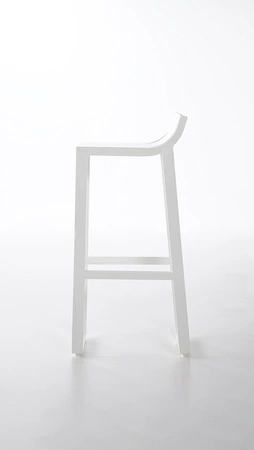 FLAT stool with backrest is one of the items in this collection. It is a designer stool made of welded, powder-coated aluminum profiles and fully recyclable polyethylene that conforms to the shape of the body.