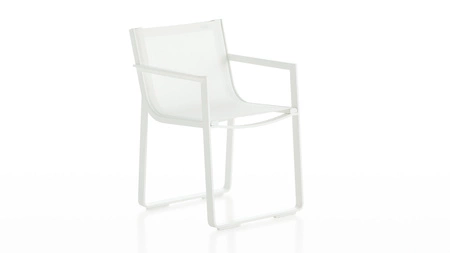 FLAT TEXTIL dining chair is a designer chair made of powder-coated, welded aluminum, covered with fabric mesh Batyline®, available in different colors and textures - choose the one that best suits your style.
