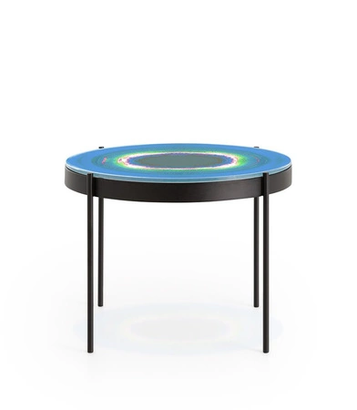 Designed by Alejandra Gandía-Blasco, iRIS tables transfer the infinite nuances of color from the designer's photographic work on natural light and its refraction to the enameled glass tops, being an example of art applied to design.
