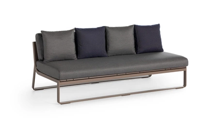 FLAT sectional 4 is not just a garden sofa. It naturally and elegantly combines powder-coated aluminum profiles with 100% recycled polyethylene, which you can customize in color: anthracite, sand, agate gray, blue gray, cement gray, white and brown.