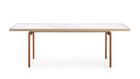 The ONDE dining table is a designer piece of furniture made of welded aluminum construction and corrugated aluminum sheet, finished with a high-quality powder coat paint that is resistant to outdoor conditions. The countertop is made of the innovative, ultra-compact Dekton® by Cosentino material - scratch-, stain- and UV-resistant for years of colorfastness.