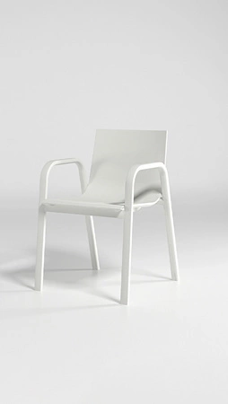 STACK dining armchair model 3 complements the line of seats made of powder-coated aluminum profiles in various colors and rigid polyurethane, redefining the classic approach to an everyday utilitarian object that we interact with in a wide variety of spaces: from homes and offices, to gardens and restaurants, to waiting rooms or hotel terraces.