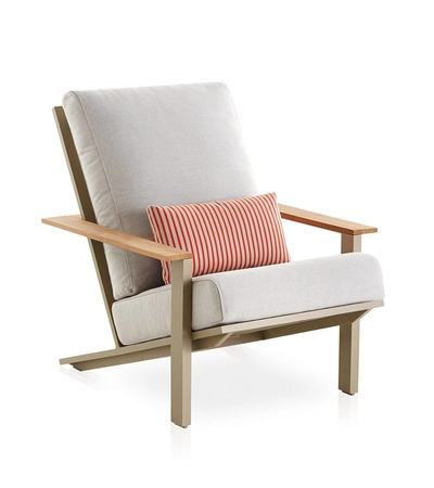 This is a designer club chair that will work well both outside and inside the house. Top quality upholstery fabrics from reputable brands such as Dedar Milano, Sunbrella or Kvadrat, are available in a variety of finishes whose textures recall typical fabrics used in interiors.