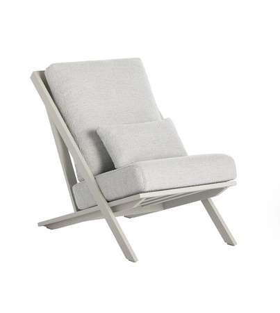 TIMELESS relax club chair, together with a pouffe from the same series, is distinguished by its elegance, originality and distinctive character. This is a designer armchair made of welded aluminum profiles, available in a variety of powder-coated colors: from subdued classics such as white, anthracite, sand, green, cement gray, blue-gray, brown... to more bold colors. Combined with a wide range of upholstery fabrics, these colors bring freshness and elegance to any outdoor space.