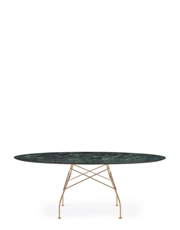 Glossy Marble Oval 192x118 cm Table Gilded Green