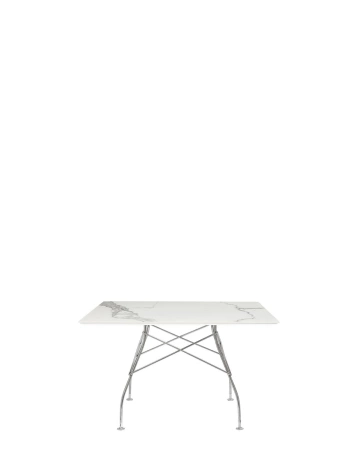 Glossy Marble Square 118x118 cm Chrome White Table