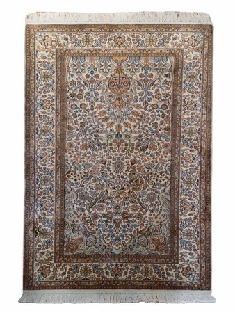 Our imported Kashmir Silk carpets are woven by hand using traditional techniques in Turkey and India . Designs are mostly Persian, in pastel colors. They are also characterized by a very fine weave and high quality materials used in their manufacture. Each carpet tells its own story: their colors have matured over decades. Despite the passage of time, they have not lost their intensity, but have only acquired the patina and character inherent in excellent handicrafts.