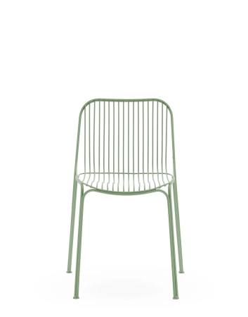 Thin metal rods form the lightweight, yet expressive forms, giving the collection a modern and subtle look. It includes HiRay enters: chair, chair with armrests, bistro table, armchair, sofa and side table - all available in colors white, maroon, black and green.