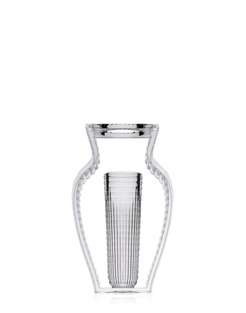 The I Shine vase from Kartell is an elegant decorative proposal inspired by the art déco style, characterized by a refined geometry of form. The design is distinguished by stylish, symmetrical lines that attract attention and introduce a touch of classic design in a modern way. The vase serves both a practical and decorative function, providing a sophisticated accent in interiors decorated with taste.