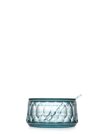 The collection includes full range of dishes - plates, trays, glasses, bowls, carafes, coffee cups and sugar bowls. What sets this line apart is original design inspired by traditional jelly molds that were once commonly used in the culinary arts.