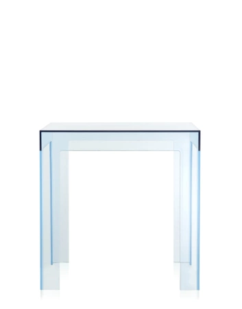 Jolly is a completely transparent small auxiliary table with ideal dimensions of 40x40x40 cm. Its compact size makes it extremely practical and versatile, fitting into a variety of spaces and interior styles. Colorful and functional, Jolly not only adds variety to an arrangement, but also offers safety of use thanks to its sturdy construction. It is a light and cheerful accessory that will be perfect as a table next to the sofa, in the bedroom or any other place where a stylish and useful piece of furniture is needed.