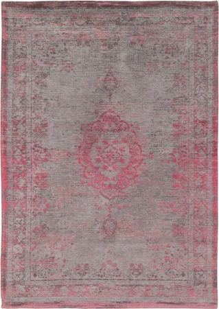 Pink and gray Vintage style rug from the Fading World Medallion collection by Belgian manufacturer Louis De Poortere. The central medallion of this rug refers to ancient classical carpets. Erasing parts of the pattern in this design allows you to incorporate a piece of history into your home, and adding colorful accents makes the rugs both modern and stylish.Woven in a flat jacquard weave construction. All carpets are hand-finished, have reinforced corners and an anti-slip layer.
