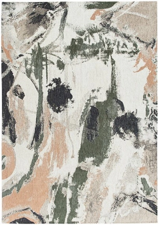 The Louis De Poortere carpet from the Fresque collection, Indian Rice model, features vibrant, natural colors and visible brush strokes, giving it an artistic and expressive look. Made using a flat jacquard weaving technique with 100% polyester (40% of which is recycled PET), the rug has a pile height of 4 mm and a weight of 1500 g/m². Non-slip PES latex backing provides stability on a variety of surfaces. This rug brings joy and dynamism to the interior, fitting perfectly in modern arrangements.