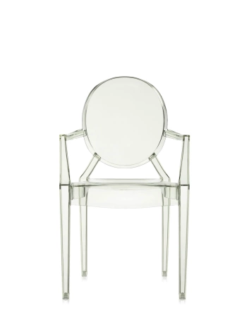 The Louis Ghost chair is a bold example of the use of polycarbonate injection molding technology in a single form that impresses with its innovative design. Inspired by the Baroque style, more specifically the iconic Louis XV era, it has been interpreted by Philippe Starck in a modern and surprising way. Transparent and crystalline form of the chair gives it lightness and elegance, while providing stability and resistance to impact and weather conditions.