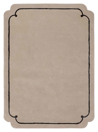Magda Fornal Cookie Beige Black rug is an elegant and classic model from the "Classics" collection, created by Magda Fornal in collaboration with Carpets & More. The beige surface of the rug has been subtly accented with a black border, which gives it a distinctive and timeless character. Made by hand from high quality materials - 90% wool and 10% viscose - guarantees durability, softness and a delicate sheen. Its grammage is 3900 g/m², and its dense, soft pile with a height of 1.5 cm ensures the comfort of use. This versatile model fits perfectly into various interior designs, adding elegance and harmony to them.