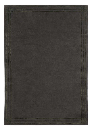 Linea Graphite Dark Green carpet is an elegant piece of the "Classics" collection designed by Magda Fornal. Made of high quality New Zealand wool (80%) and viscose (20%), it combines the durability and natural insulating properties of wool with the delicate sheen of viscose, giving the interior a subtle elegance. The dark gray surface of the rug has been highlighted with a green border, which adds to its distinctive and classic character. Handmade ensures soft and high bristles with a thickness of 1.5 cm, and the weight of 3900 gsm guarantees durability and comfort. Available in standard sizes of 160×230 cm, 200×300 cm and 240×340 cm and 300x400 cm, this rug fits perfectly in both modern and classic interiors, bringing warmth and timeless style to them.