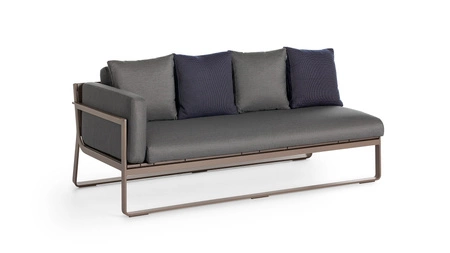 FLAT sectional 1 is not just an outdoor sofa. Its modular design allows you to elegantly create your own outdoor space. This designer modular piece is made of aluminum profiles and 100% recyclable polyethylene and is available in colors such as blue-gray, cement-gray, brown, anthracite and white.