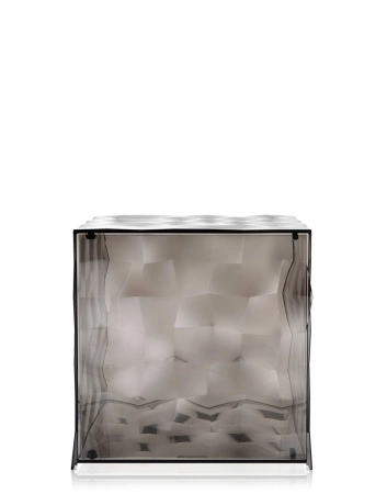 Optic is a modern cubic storage module, available in two versions: with door closed or with an open side. Its surface is decorated with striking transparent or mirrored pyramids with a square base, which create an intriguing play of light and depth, giving it a unique visual character.