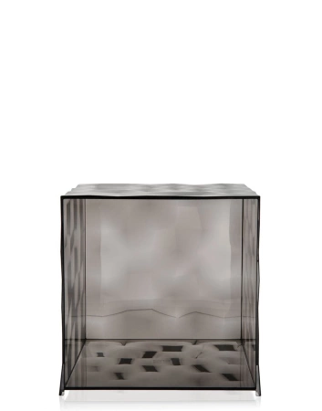 Optic is a modern cubic storage module, available in two versions: with door closed or with an open side. Its surface is decorated with striking transparent or mirrored pyramids with a square base, which create an intriguing play of light and depth, giving it a unique visual character.