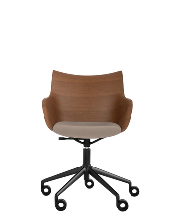 Q/Wood from Kartell is a modern swivel chair that combines the timeless elegance of wood with contemporary design. Its distinctive feature is the precision craftsmanship of bent wood, which gives it a unique look. Available in three color options: light wood with white seat and chrome base, dark wood with black seat and chrome base, or dark wood with black seat and black base. Q/Wood is an ideal choice for the office or modern interiors, offering style and comfort in one.