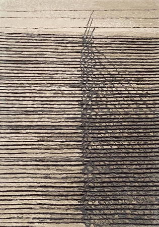 Graphic trace of seismograph recording on a ribbon of paper or translation of electrical changes - the lines of ink that form the structure of this pattern are as bold as they are repetitive. Contemporary carpet with a unique design.