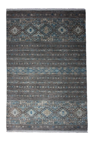 Schall Samarkand wool rug 124072 is a hand-woven rug with a harmonious color composition dominated by shades of gray, blue and beige. Geometric patterns inspired by oriental craftsmanship give it a unique and elegant character. Delicate color transitions and subtle embellishments highlight the craftsmanship. Made of high-quality wool, it is soft to the touch and durable, so it will work well in both classic and modern interiors, adding style and coziness to them.