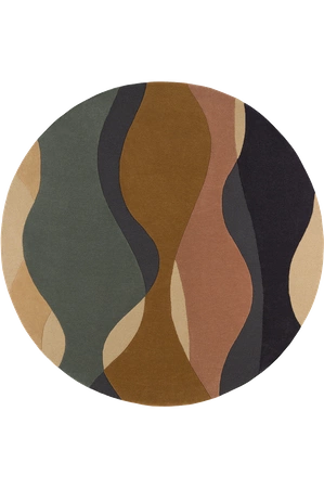 Round rug OCÉANE Automne from renowned French brand Toulemonde Bochart is a combination of fine art and nature. Its undulating pattern, reminiscent of the soft lines of a landscape or calm sea waves, was designed in a harmonious palette inspired by the colors of autumn: deep green, copper, amber, brown, dim pink and dark navy blue.